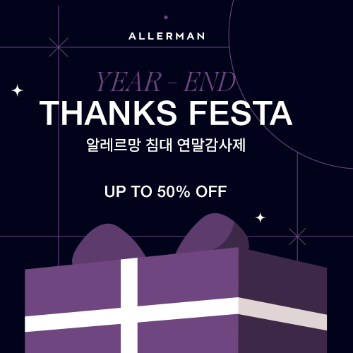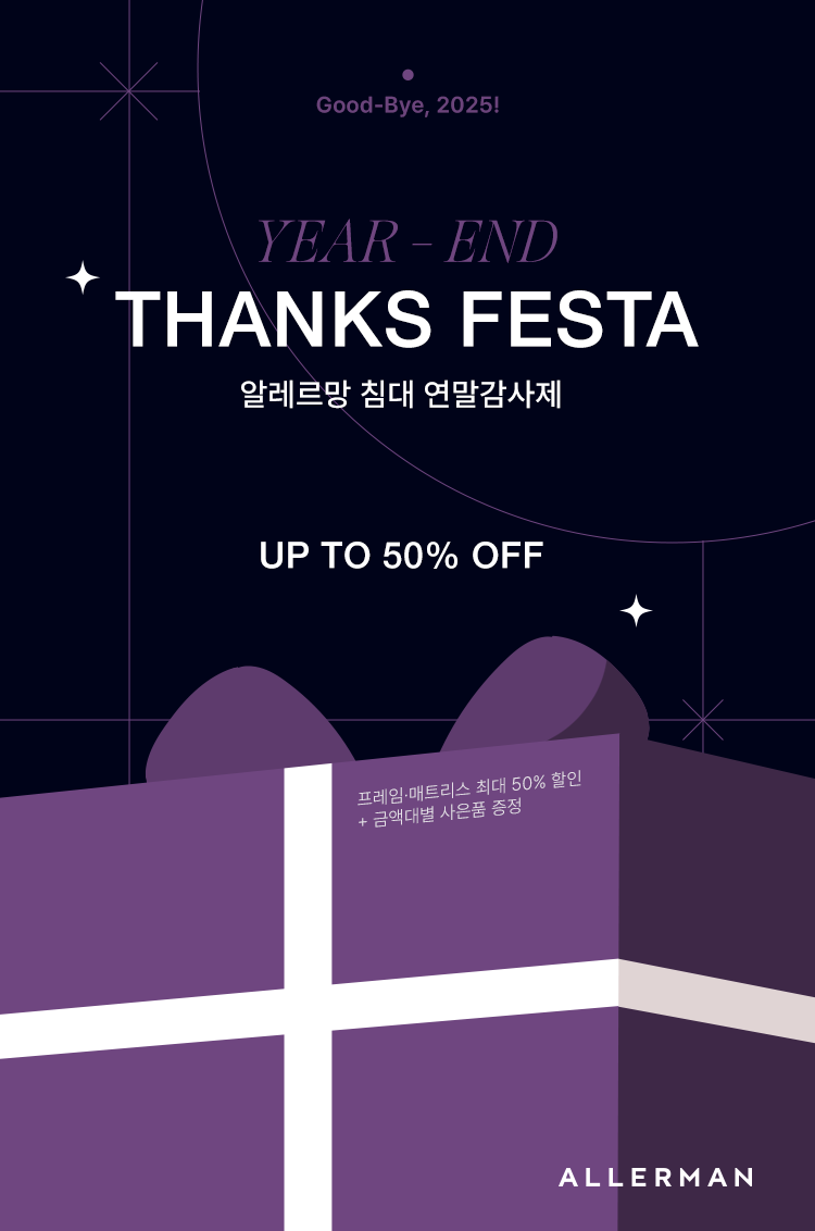 알러지프리 침구의 역사 침구 제품 바로가기 알러지프리 침구의 역사 혁신적인 제품과 앞서가는 디자인으로 프리미엄 침실 공간을 만들어온 알레르망은 대한민국 알러지프리 침구의 역사입니다. 침구 제품 바로가기 알러지프리 침대의 시작 침대 제품 바로가기 알러지프리 침대의 시작 1등과 1등의 만남알레르망의 알러지방지 기술과 영국 해리슨 스핑크스의 침대 기술이 만나 세계 최초 알러지방지 매트리스 알레르망 스핑크스가 탄생했습니다. 침대 제품 바로가기 알러지프리 침구의 역사 알레르망 8년 연속 침구업계 1위*백화점 10년 연속 1위 영국 알러지협회(BAF)15가지 품목 인증 획득 고기능성 알레르겐 방지Allergy X- Cover원단 다운 빠짐을 최소화한특허받은 무봉제 기술 시즌상품 신상품/베스트 웨딩 SK/K사이즈 자세히 보기 글래드쿨 냉감패드윈터 냉감패드아이스베어 냉감패드(S)아이스베어 냉감패드(B)라크로와A로베르트베르너로벨리아듀마베니에라크로와 B어바닉헤네시A그리니치메인메인 알러지프리 침대의 시작 알레르망 스핑크스 8,000개의 핏으로 더 편안한HD 마이크로 포켓스프링 알러지 유발 물질 차단Allergy X-cover Forte 프레스티지 프리미엄 스탠다드 자세히 보기 비공개: 버밍엄비공개: 앤도버비공개: 롬퍼드노팅험비공개: 위트니비공개: 애버딘뉴포트레스터카디프비공개: 글래스고앤드류루턴 event 알레르망 [침대] 연말감사제 2025-11-01 ~ 2025-12-31 이벤트 바로가기 event 알레르망 [가두점] 8년 연속 침구판매 1위 페스티벌 2025-10-31 ~ 2025-11-30 이벤트 바로가기 event 알레르망 [가두점] 구스 블랙프라이데이 2025-10-17 ~ 2025-11-16 이벤트 바로가기 event 알레르망 [백화점] 구스 블랙프라이데이 2025-10-17 ~ 2025-11-09 이벤트 바로가기 event 알레르망 침대 굿슬립 리빙페어 2025-08-01 ~ 2025-10-31 이벤트 바로가기 sns 알레르망의 소식과 라이프스타일을 다양한 SNS 채널에서 만나보세요. Follow us on Social Media review ALLERMAN 기능도 디자인도 만족스러운 알레르망 침구 차렵이불 View more review ALLERMAN 포근포근 사뿐사뿐 꿀잠자는 비법 베딩세트 View more review ALLERMAN 신혼침실 취향저격 알레르망침구 베딩세트 View more review ALLERMAN 포근한 잠자리를 책임져주는 구스이불! 구스차렵이불 View more review ALLERMAN 아기 때부터 쭉 알레르망입니다! 베이비 차렵이불 View more 고객님, 궁금하신 점을 문의주세요. 침구 알레르망 제품은어떤 효과가 있나요? 침구 A/S 처리 절차는어떻게 될까요? 침대 침대 사이즈는어떻게 구분하나요? 침대 나에게 적합한 매트리스는어떻게 찾을 수 있을까요? 알레르망과 알레르망 스핑크스 제품을 만나볼 수 있도록 매장을 안내드립니다 고객센터 운영시간 평일 09:00~17:30 (점심시간 12:30~13:30) 알레르망 스핑크스 (침대) 02.555.0947 알레르망 (침구) 02.555.0940-0941